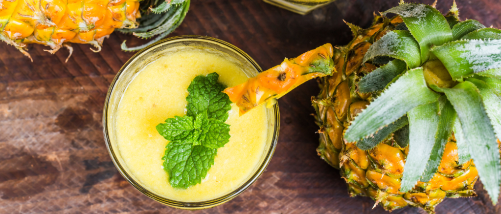 - Sirve en un vaso alto y decora con una rodaja de piña en el borde.